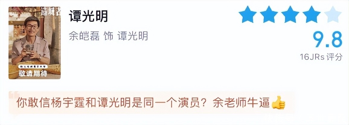 第一名:余皑磊(饰 谭光明)9.8分