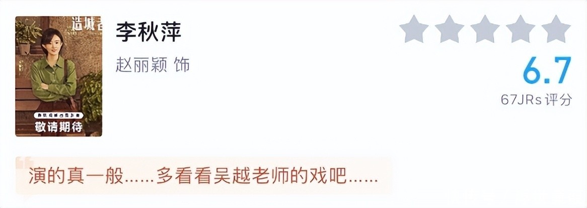 这并非否定赵丽颖的表演实力,而是印证了优秀演员亦需匹配契合度更高的角色土壤。6.7分,是观众对其突破边界的真诚鼓励,更是对下一次蜕变的深切期许。