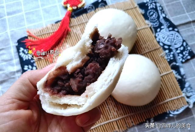 2,面团揪成小剂子,擀成圆形的皮,包入豆沙馅收口后,团成馒头的形状,盖上湿布进行二次发酵约30分钟,上锅蒸熟即成。